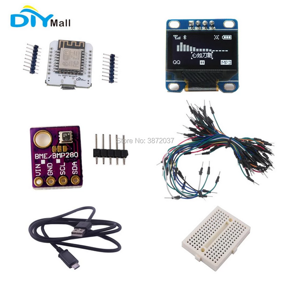 Package Includes: 1 X MiniDK 1 X 0.96 OLED White 1 X 170 Tie Point Breadboard 1 X 65pcs Jump Wire 1 X Micro USB Cable 1 X BME280 Pressure Humidity Temperature Sensor Document link: https://drive.google.com/open?id=1ClXhsZ9YhpIe02s92lyQP42AXGGmPCmo